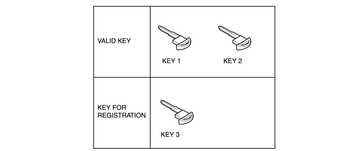 - Since two or more keys need to be programmed to start the engine, program two or more keys after the replacement.