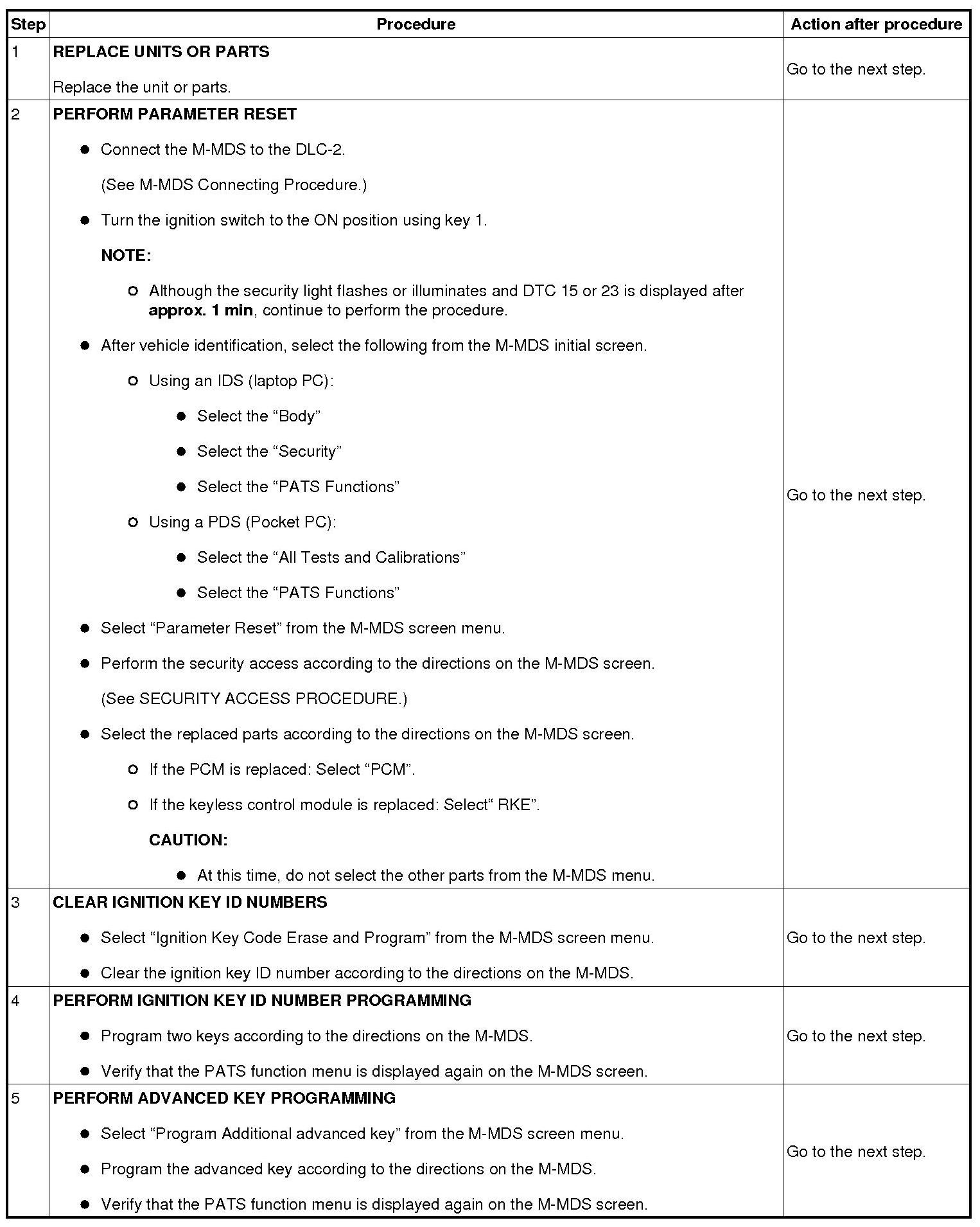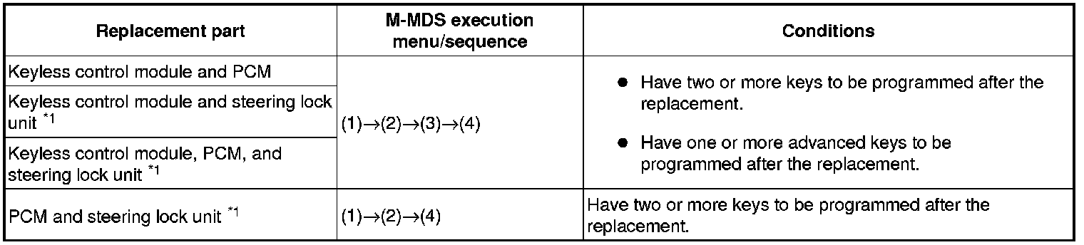 No.7 Programming Procedure Due to Simultaneous Replacement of Immobilizer System-related Parts (PCM, Keyless Control Module, and Steering Lock Unit)