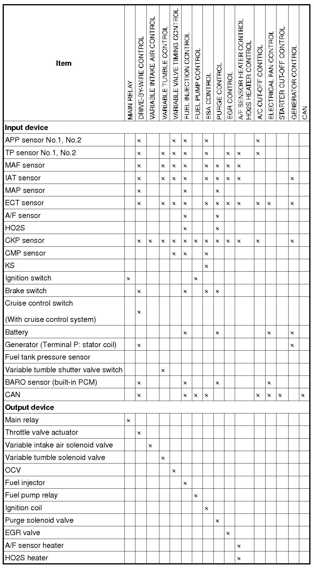Control System Device And Control Relationship Chart
