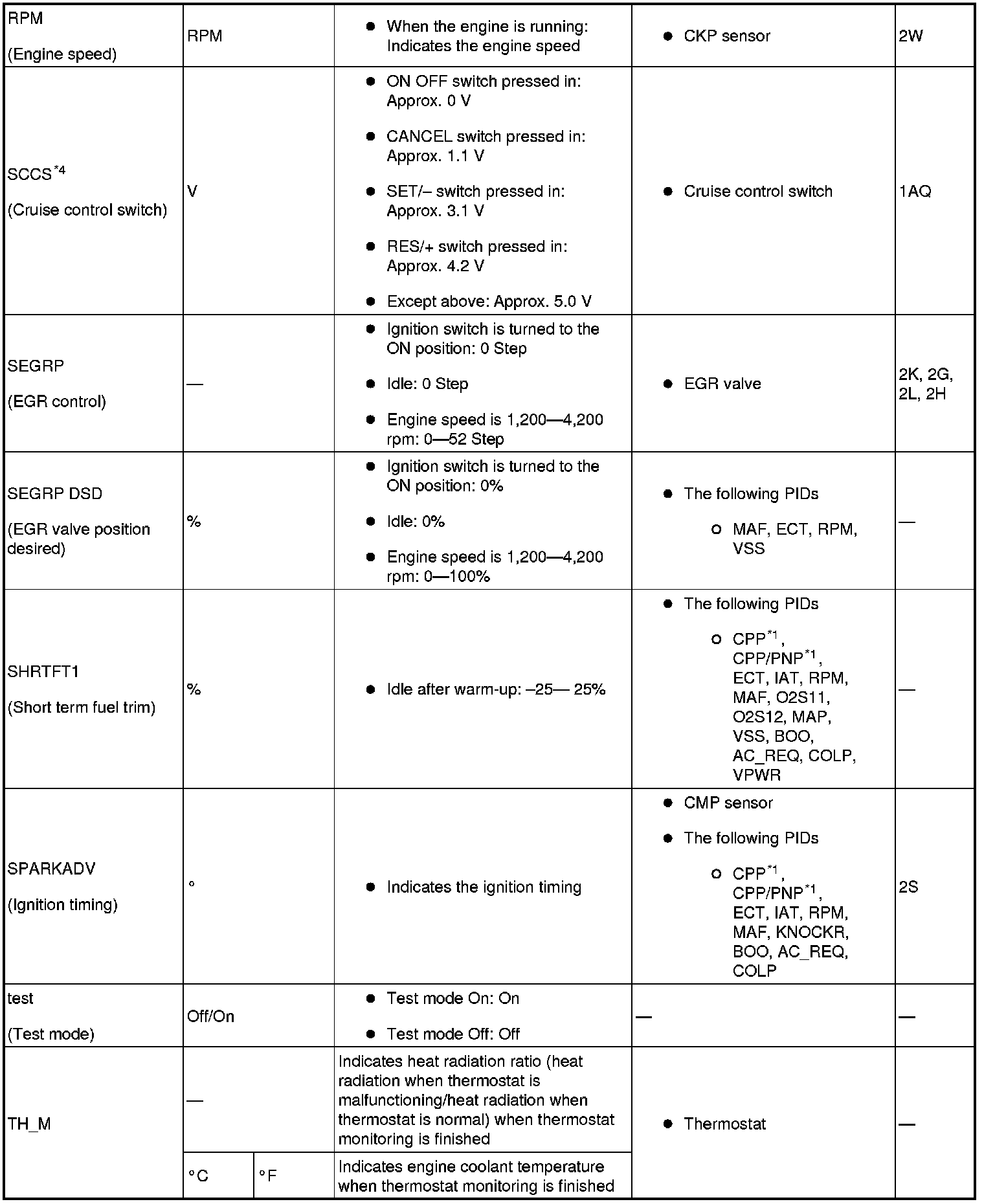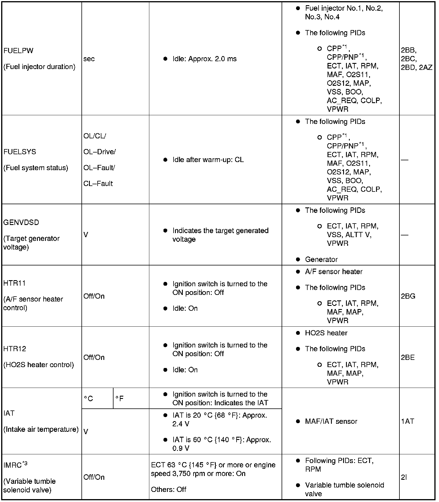 PID/DATA monitor table (reference)