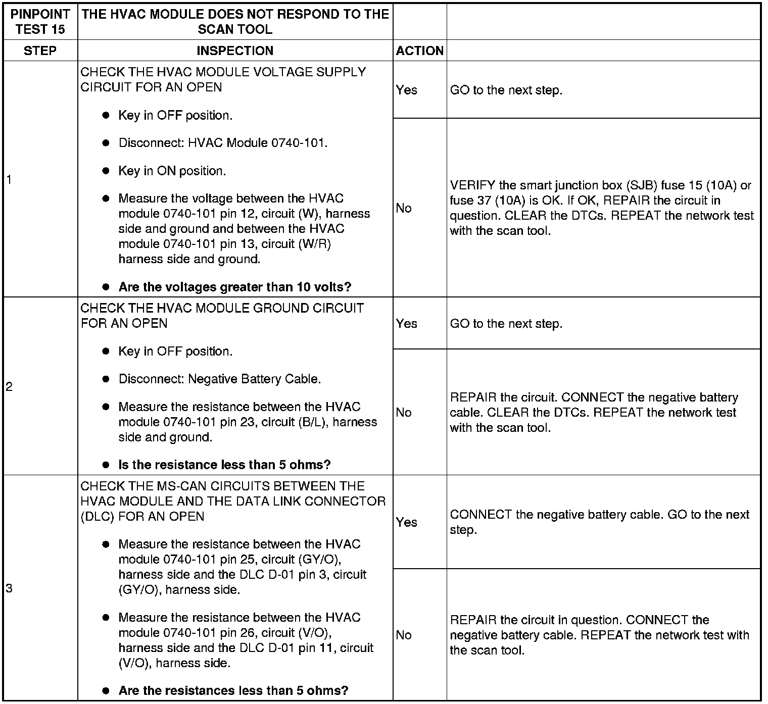 PINPOINT TEST 15: THE HVAC MODULE DOES NOT RESPOND TO THE SCAN TOOL