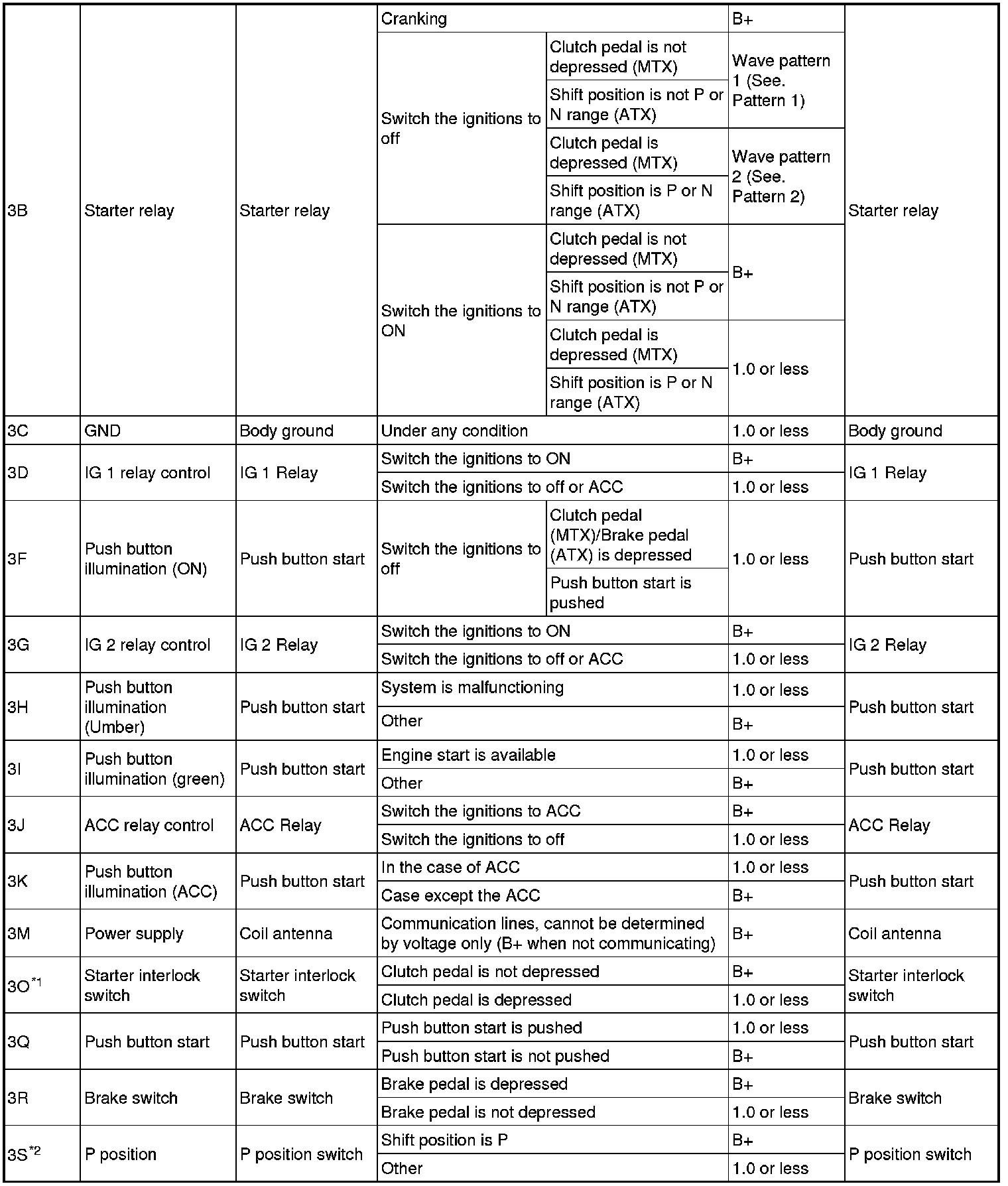 - Starter relay: 3B (+) -> body ground (-)