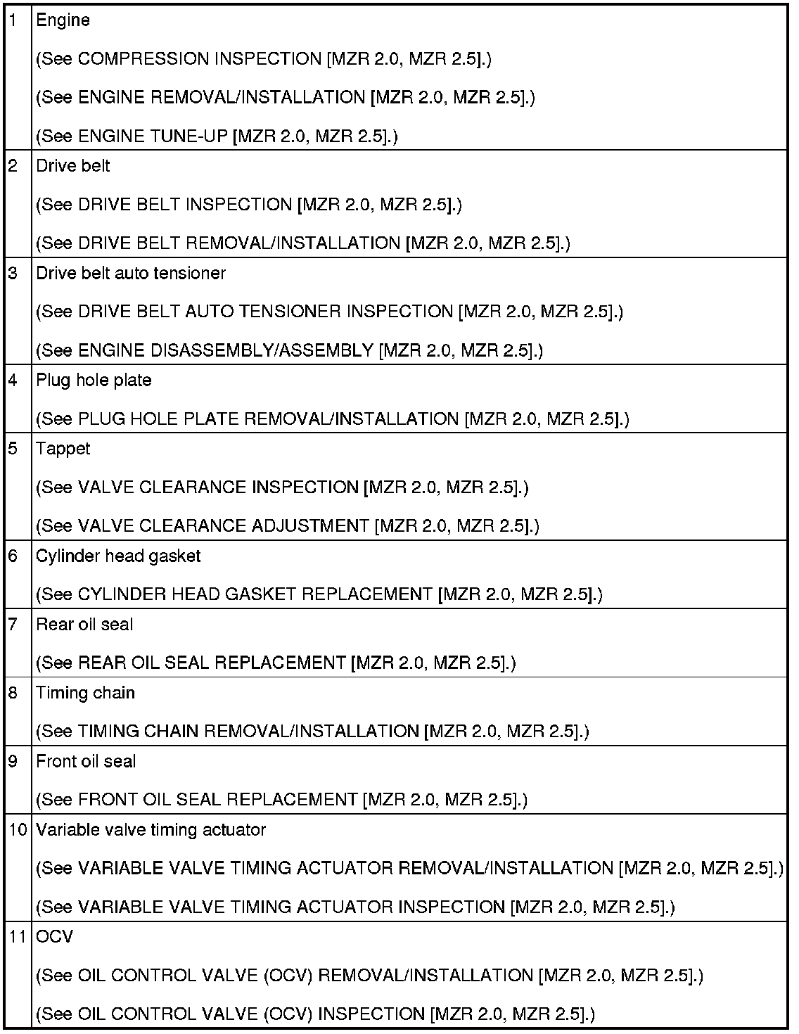 ENGINE LOCATION INDEX [MZR 2.0, MZR 2.5]