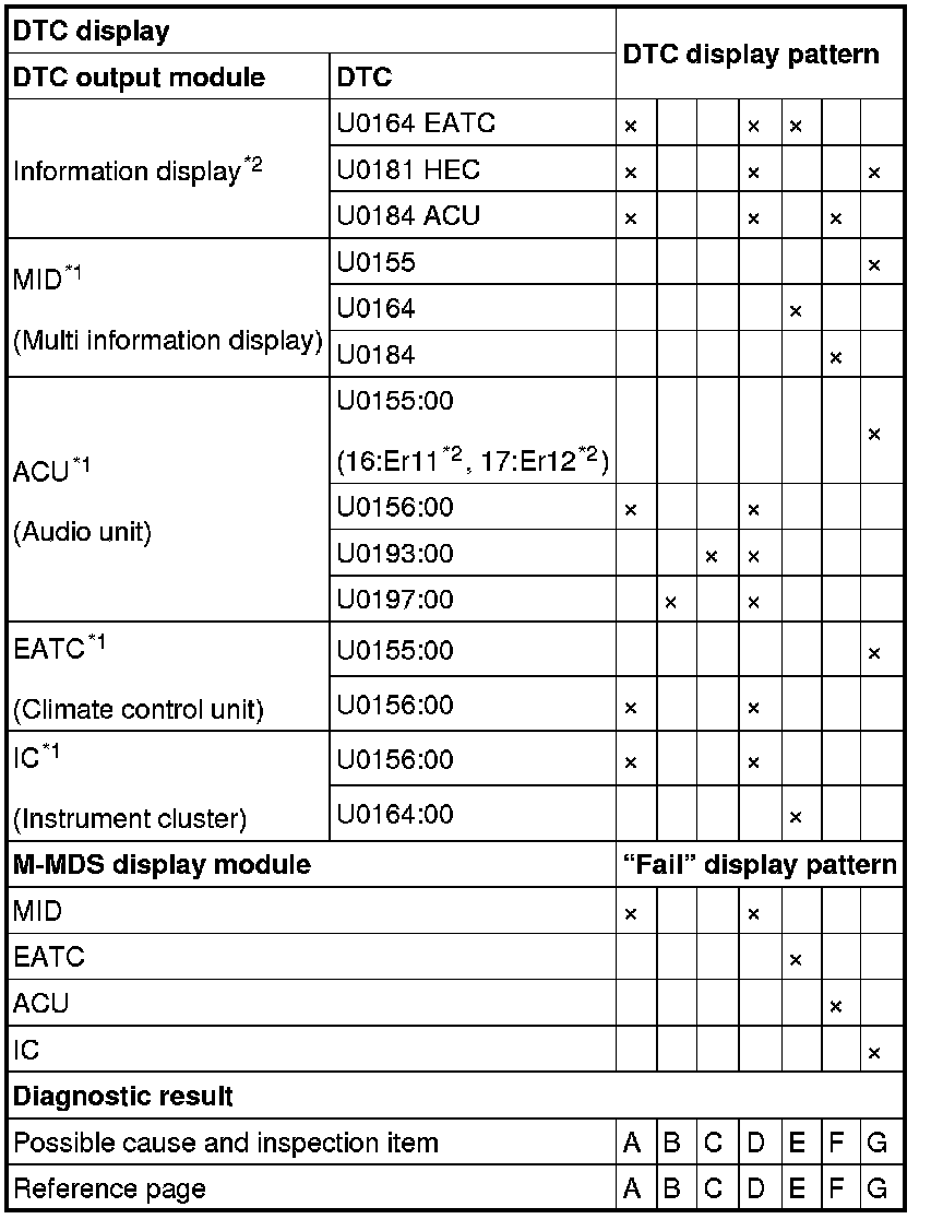 2. Apply the communication error DTC and the failed module to Diagnostic Table for Determining Malfunctioning Part, and select the possible cause for the diagnostic result and the reference for the inspection item.