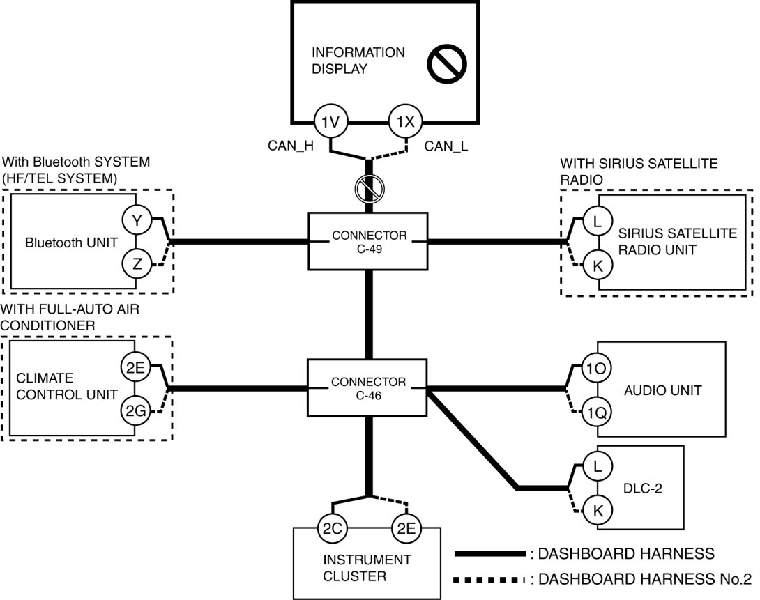 - Open circuit in wiring harness between information display and connector C-49