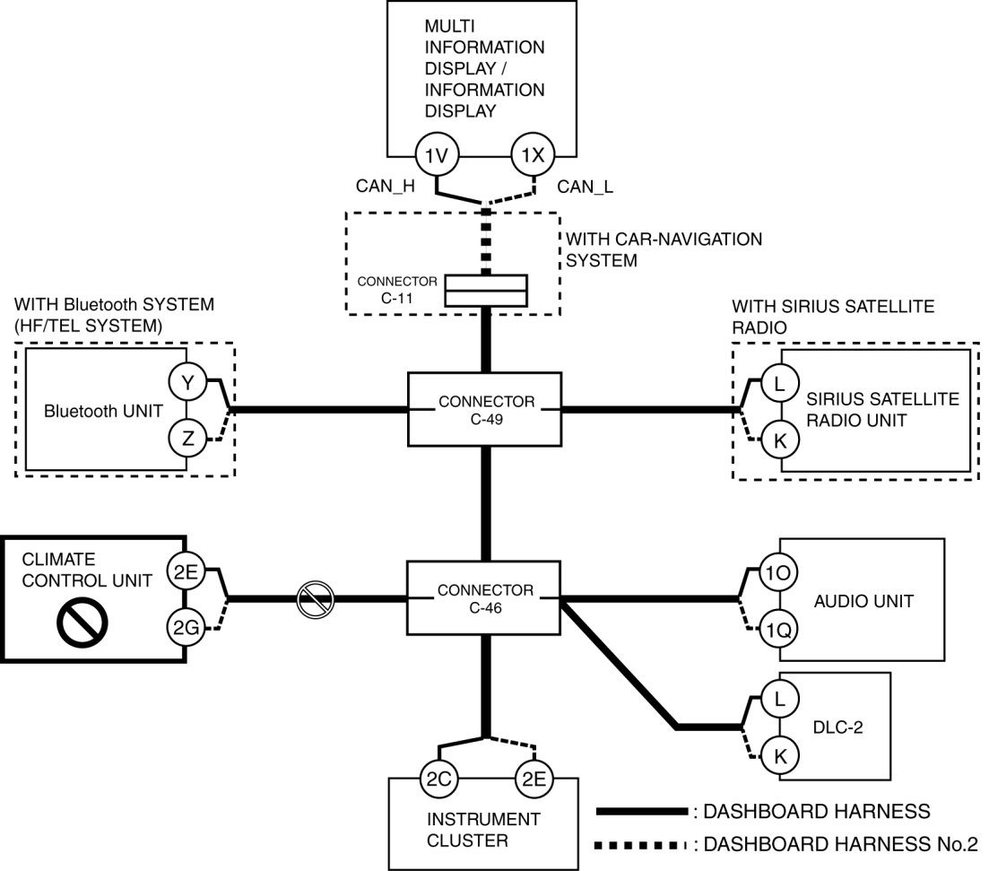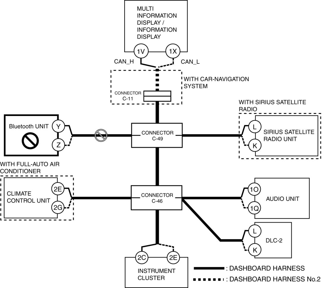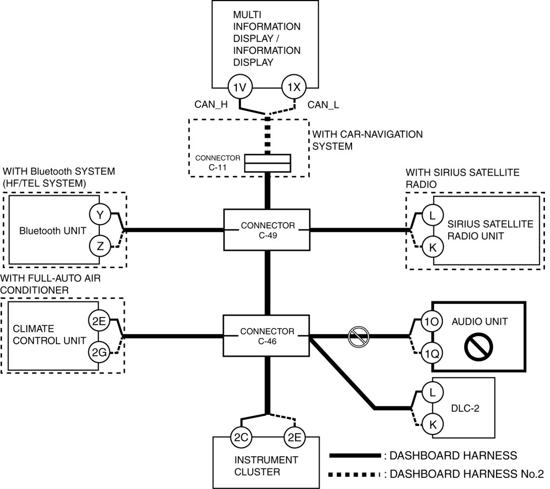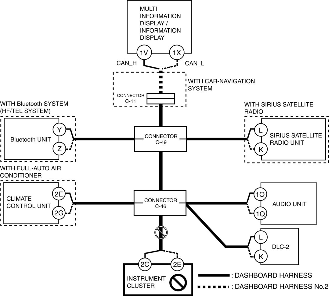 - Wiring harness between multi information display/information display terminal 1X and connector C-11