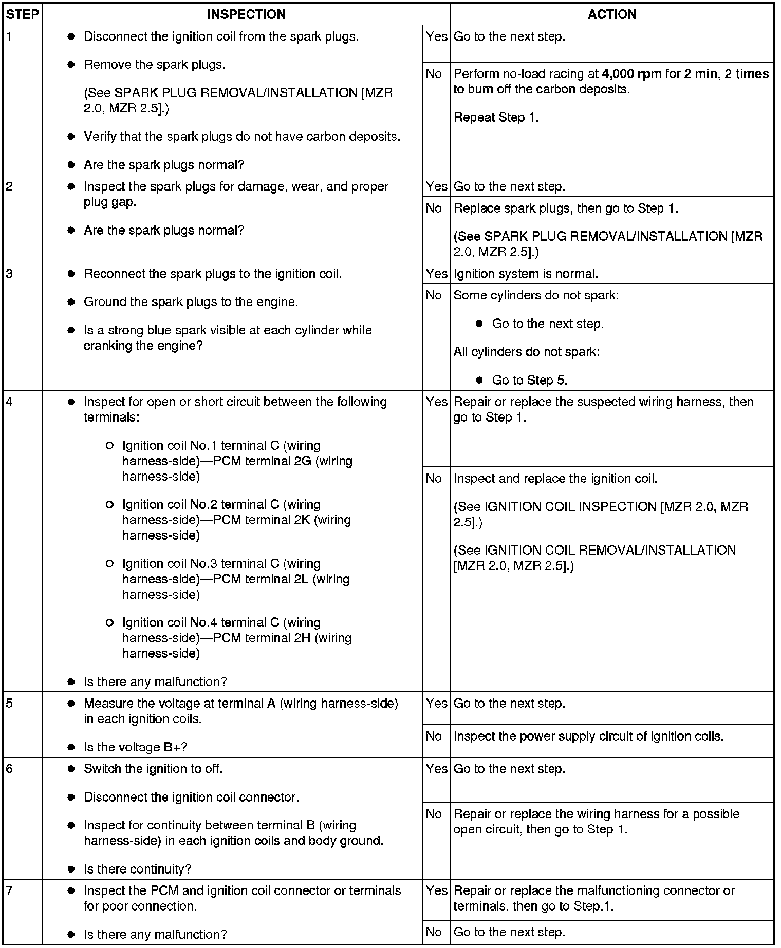 - High voltage in the ignition system can cause strong electrical shock which can result in serious injury. Avoid direct contact to the vehicle body during the following spark test.