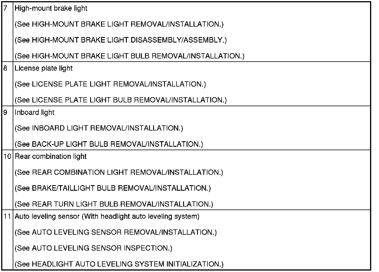 LIGHTING SYSTEMS LOCATION INDEX
