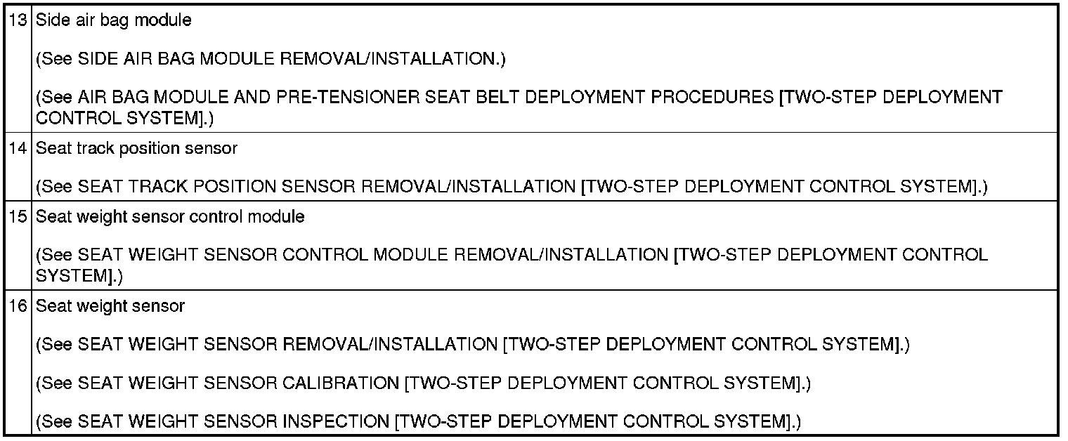 AIR BAG SYSTEM LOCATION INDEX [TWO-STEP DEPLOYMENT CONTROL SYSTEM]
