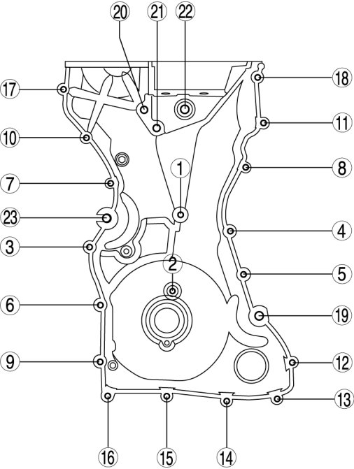 Install the engine front cover bolts in the order as shown.