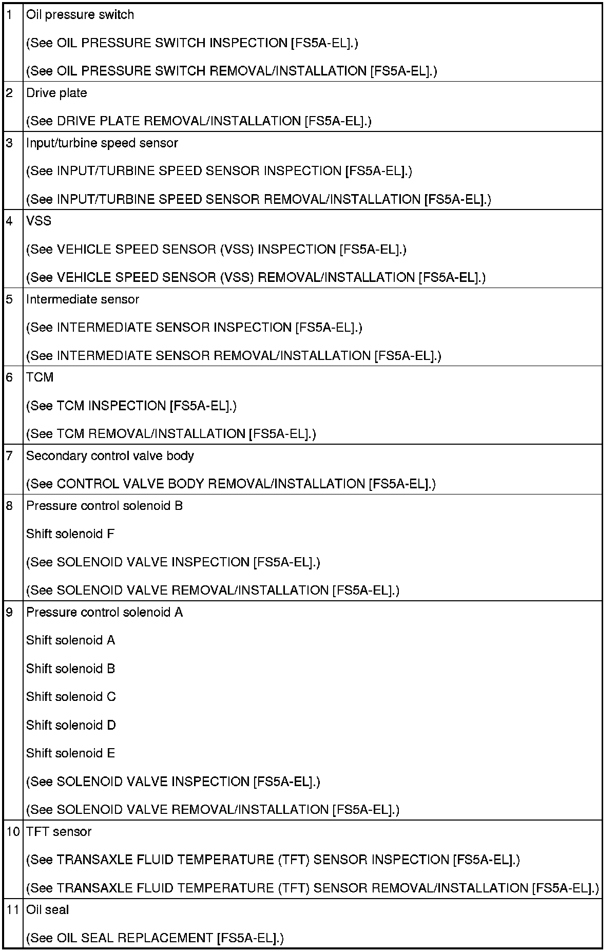 AUTOMATIC TRANSAXLE LOCATION INDEX [FS5A-EL]