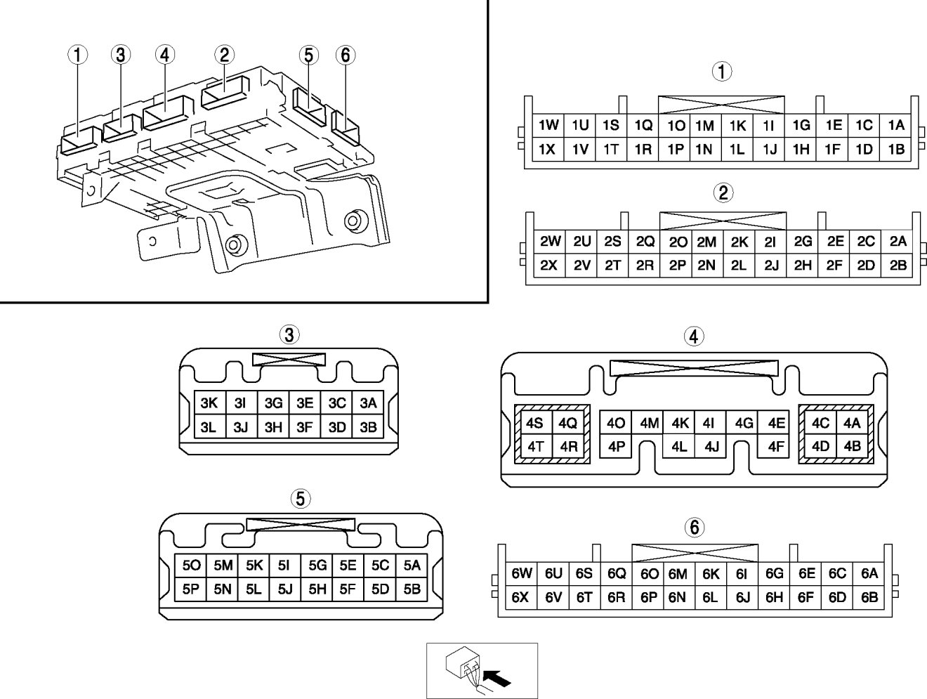 - Unlock input (Driver-side front door lock-link switch): 6L (+) -> body ground (-)