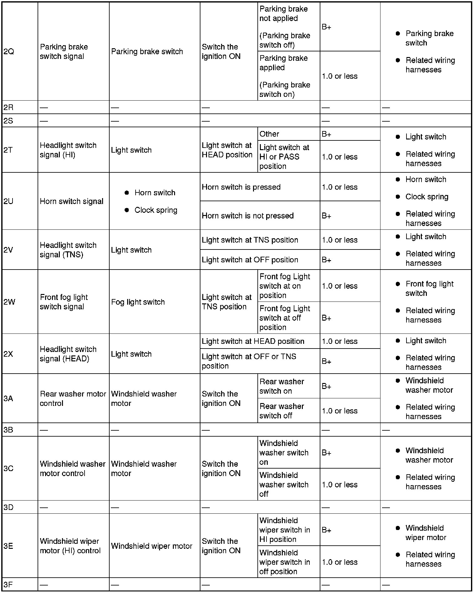 - Sliding door switch (LH) signal: 6E (+) -> body ground (-)