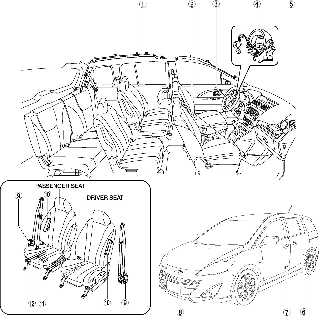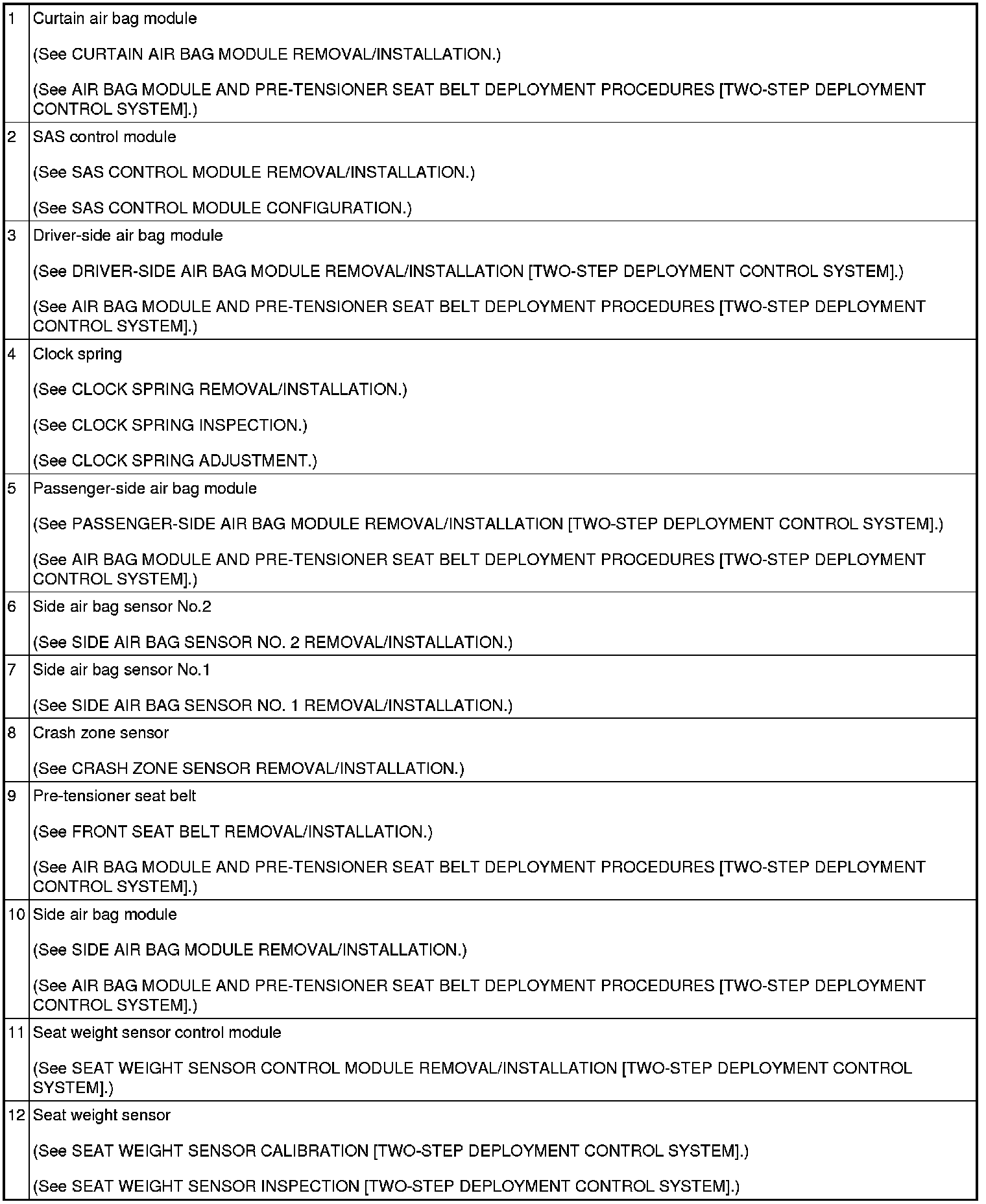 AIR BAG SYSTEM LOCATION INDEX [TWO-STEP DEPLOYMENT CONTROL SYSTEM]