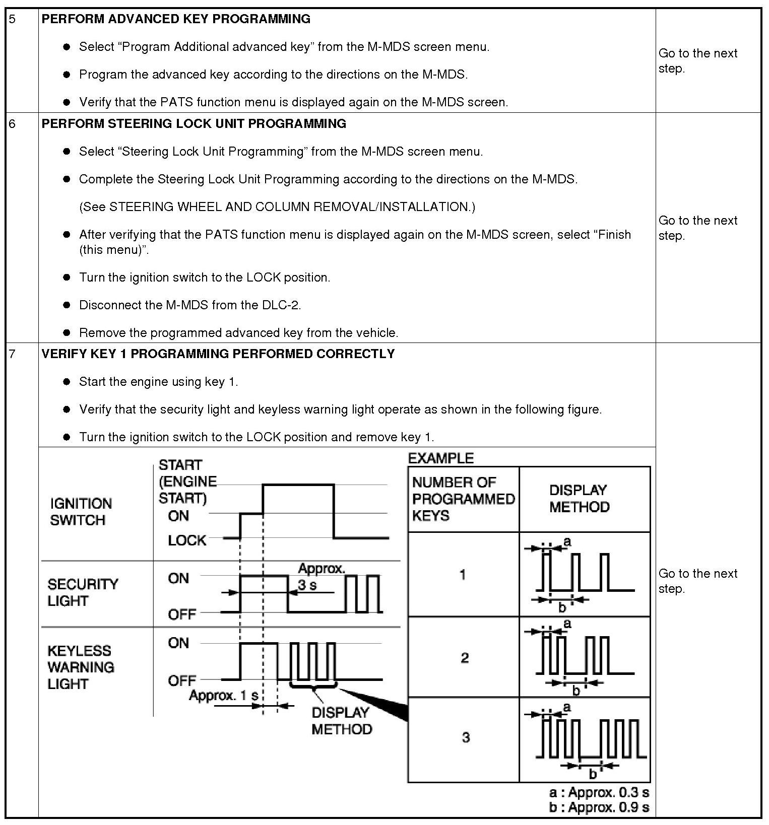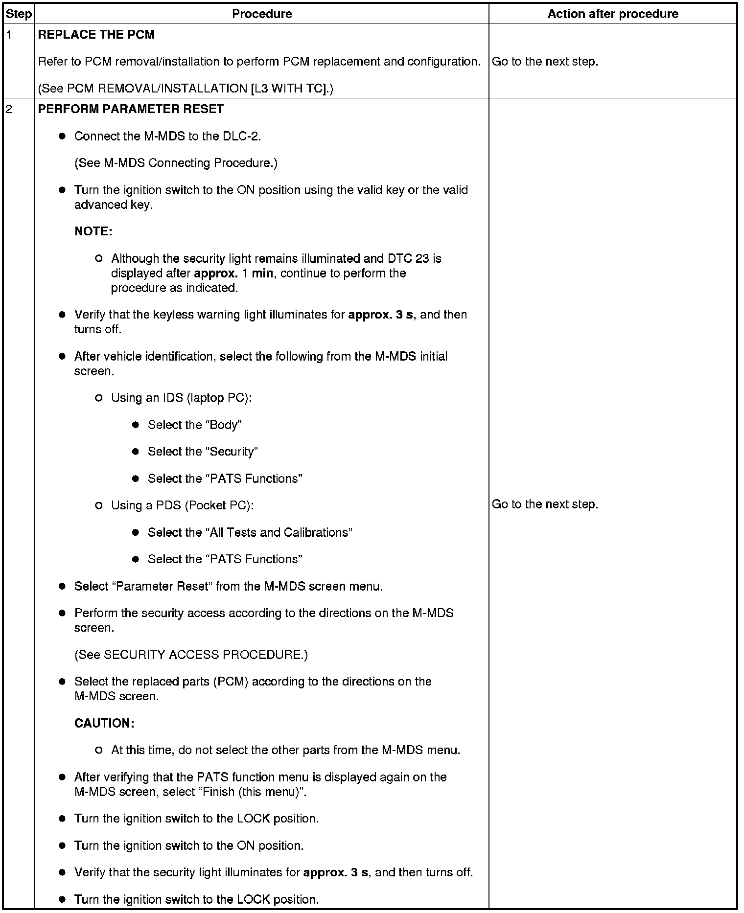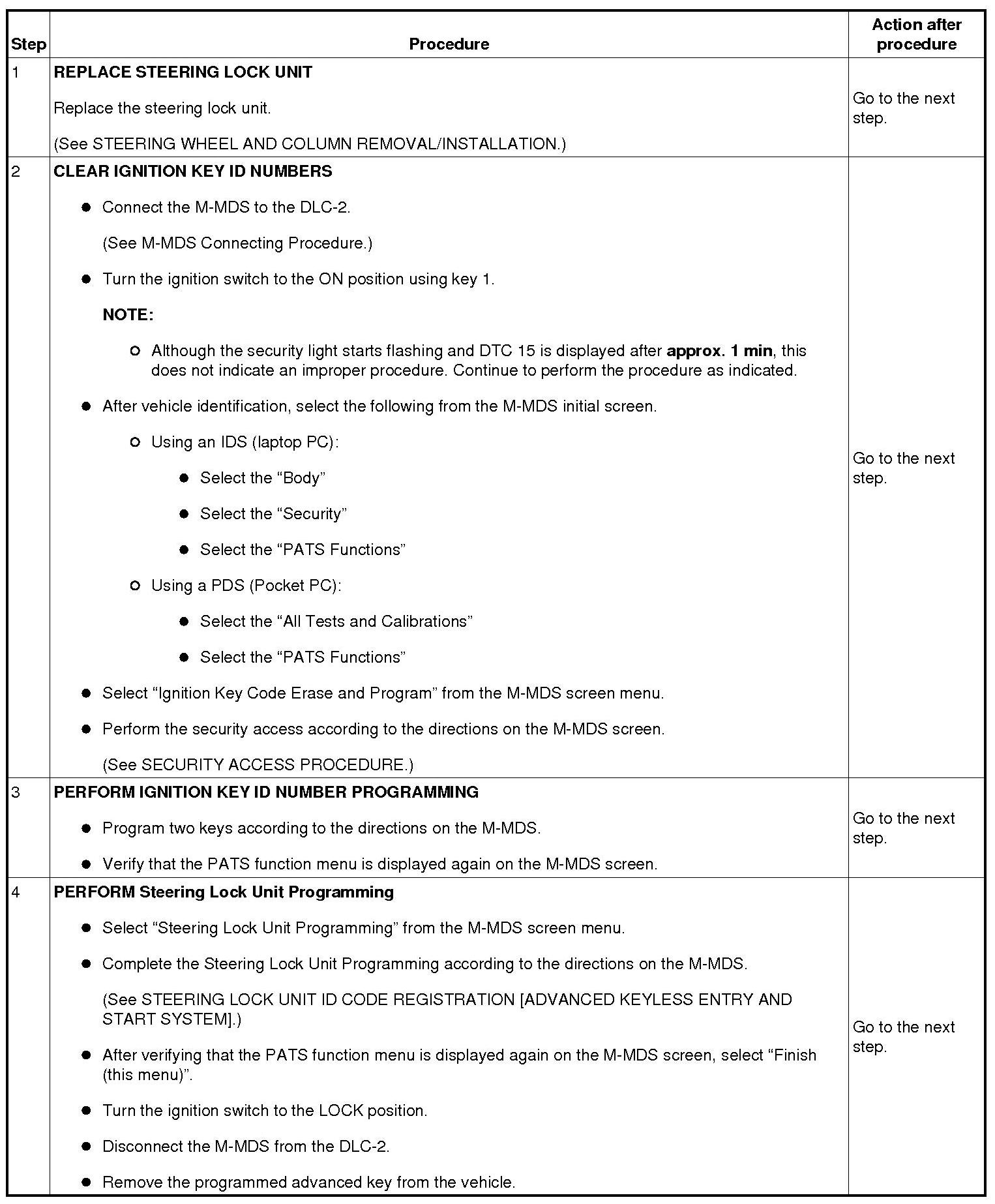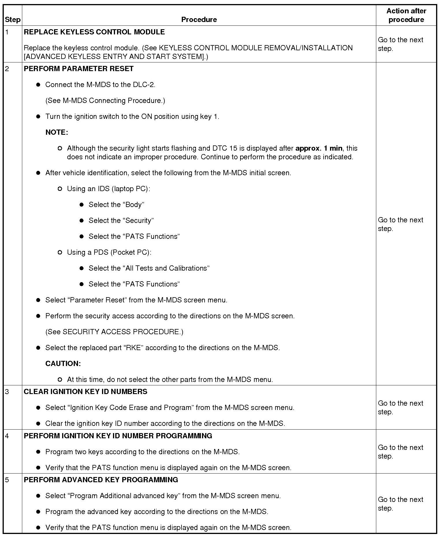 No.7 Programming Procedure Due to Simultaneous Replacement of Immobilizer System-related Parts (PCM, Keyless Control Module, and Steering Lock Unit)