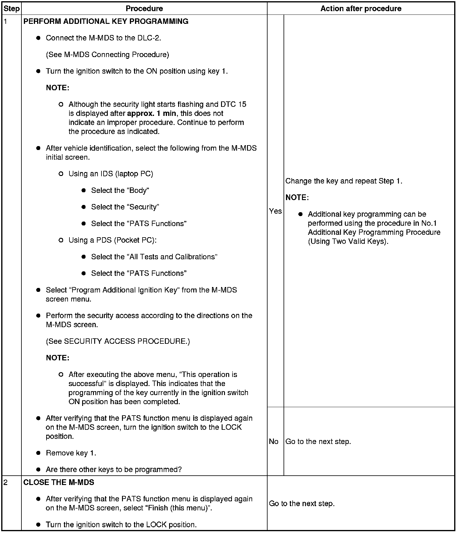 - If a key ID number cannot be programmed and DTC 15 is displayed, the maximum number of programmed keys may have been reached. Verify the number of programmed keys using the M-MDS.