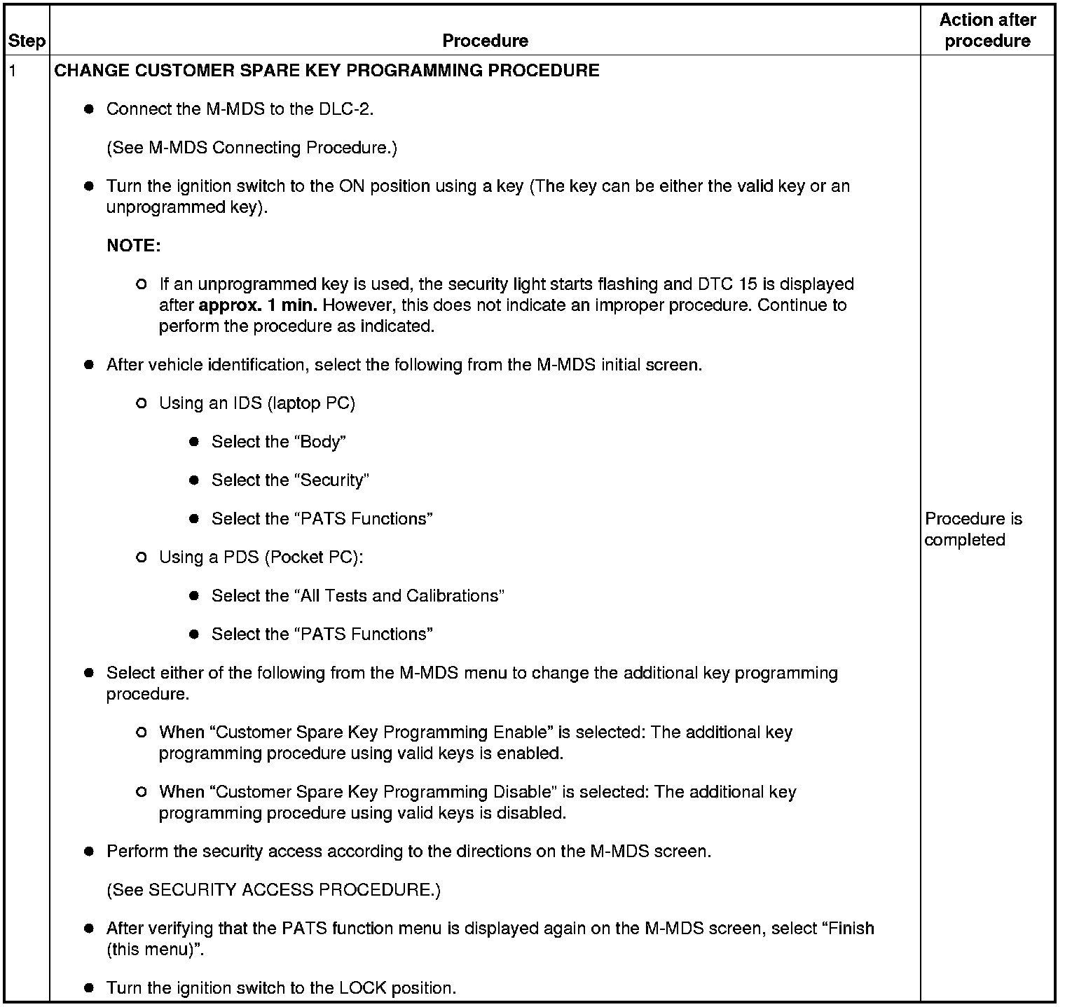 - If "Customer spare key programming disable" is selected, perform additional key programming using the M-MDS.
