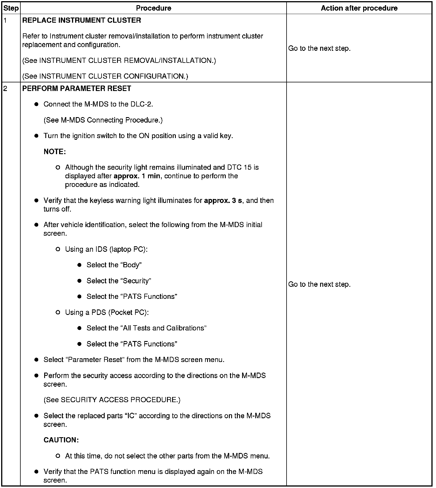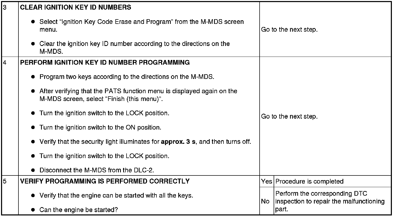 No.6 Programming Procedure Due to Simultaneous Replacement of Immobilizer System-related Parts (PCM and Instrument Cluster)