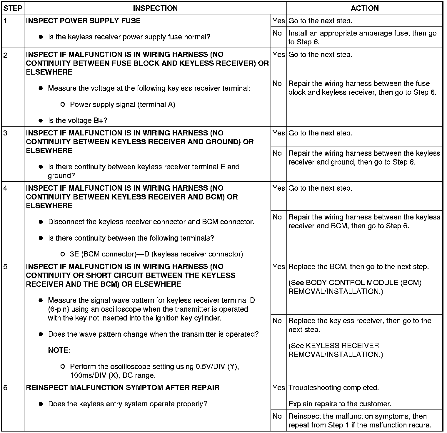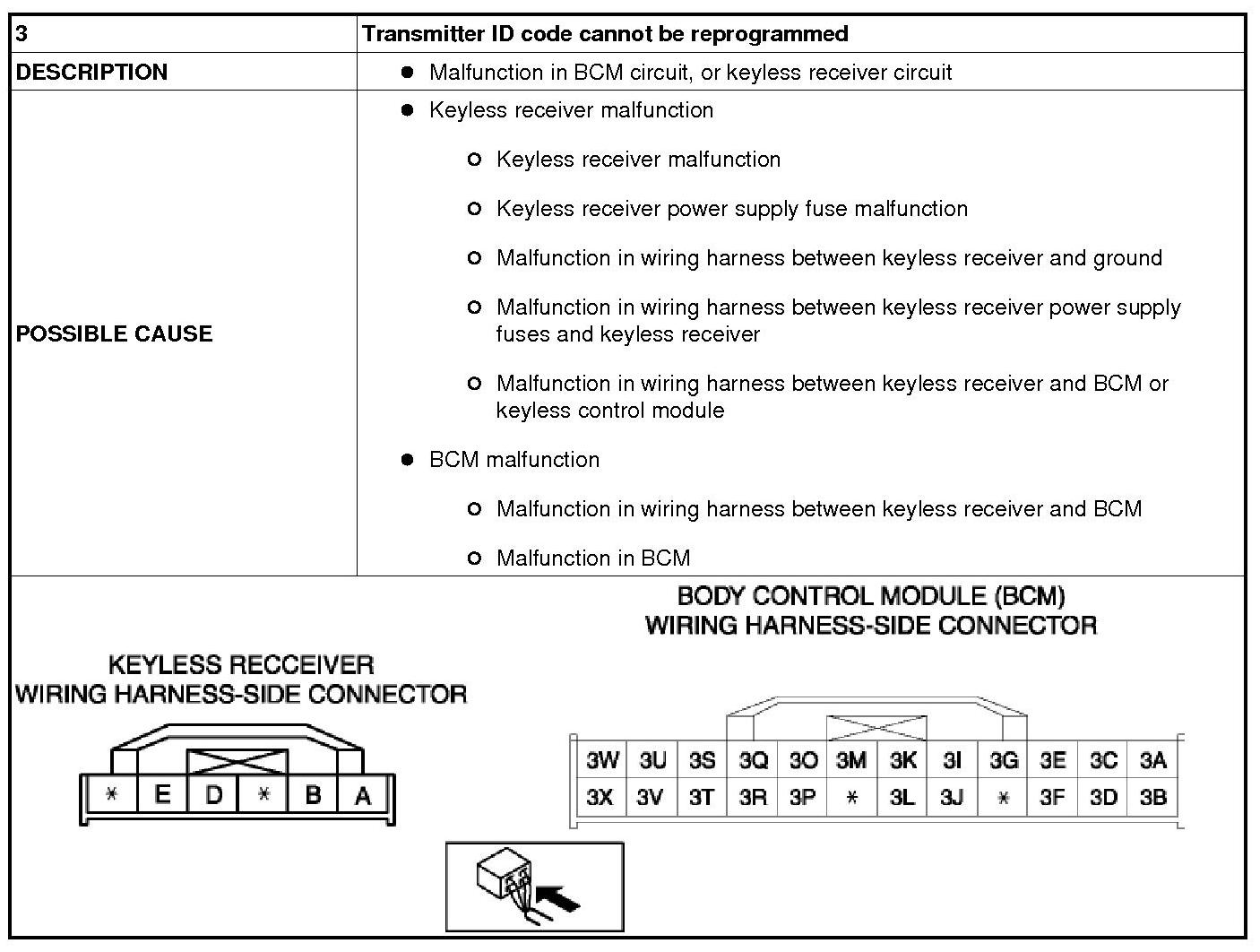 Home >> Mazda >> 2012 >> CX-7 AWD L4-2.3L Turbo >> Repair and Diagnosis >> Body and Frame >> Locks >> Keyless Entry >> Testing and Inspection >> Symptom Related Diagnostic Procedures >> Keyless Entry System >> No. 3 Transmitter ID Code Cannot Be Reprogrammed