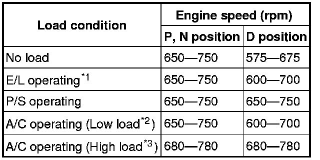 - Excludes temporary idle speed drop just after the loads are turned on.