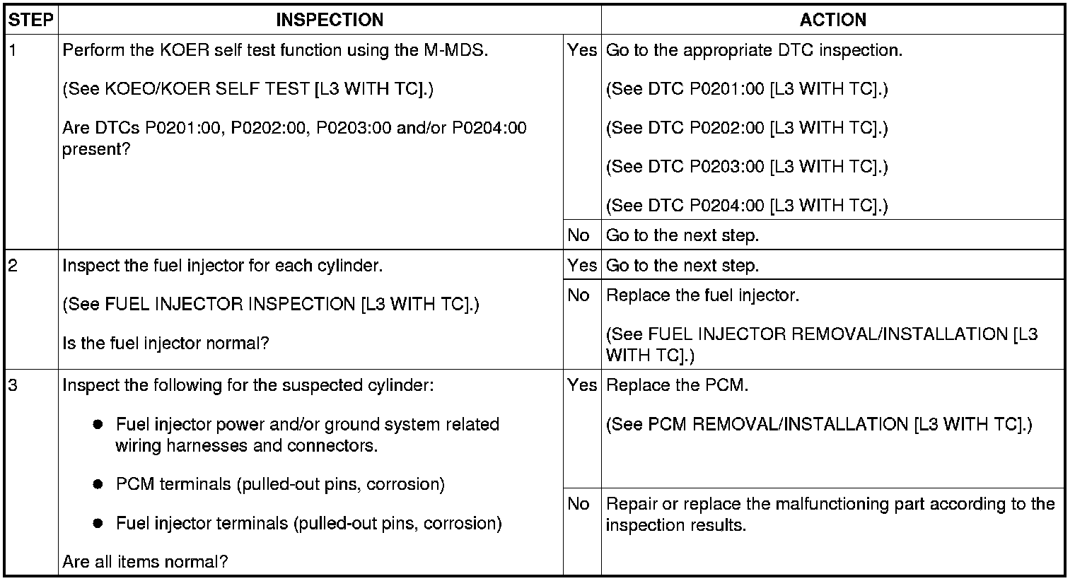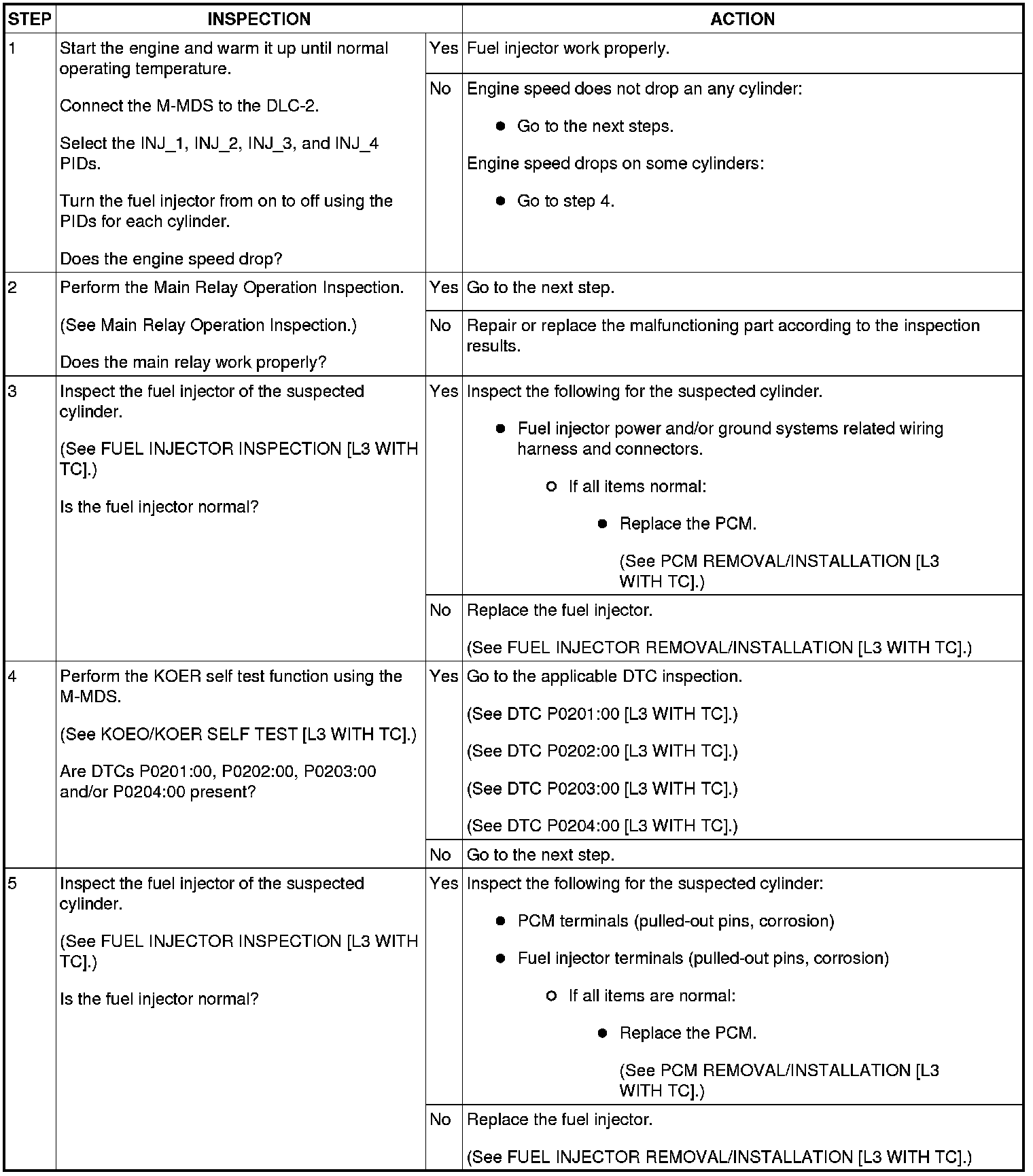 - This inspection has to be performed after the Fuel Injector Operation Inspection.