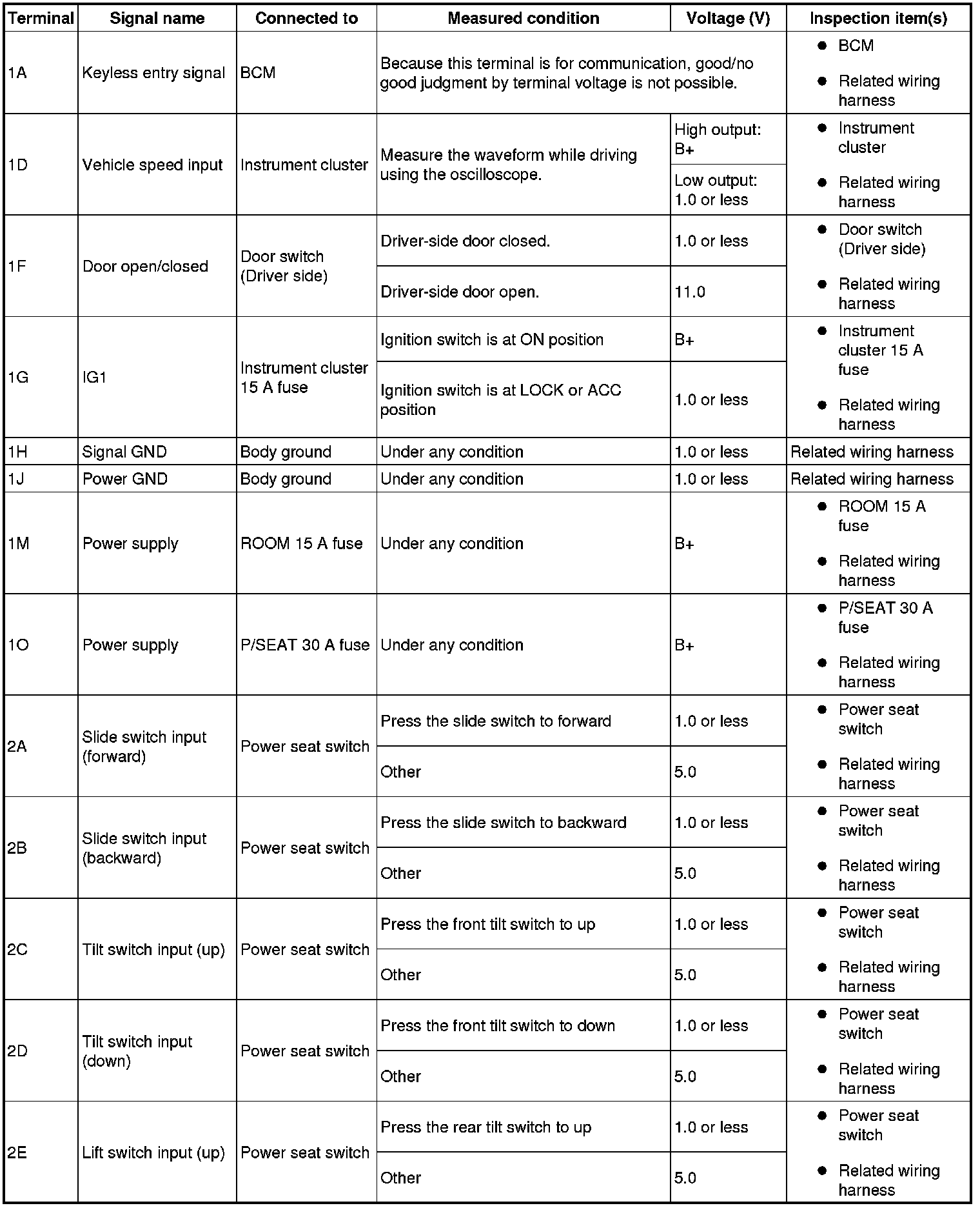 Home >> Mazda >> 2012 >> CX-7 AWD L4-2.3L Turbo >> Repair and Diagnosis >> Relays and Modules >> Relays and Modules - Body and Frame >> Memory Positioning Module >> Testing and Inspection