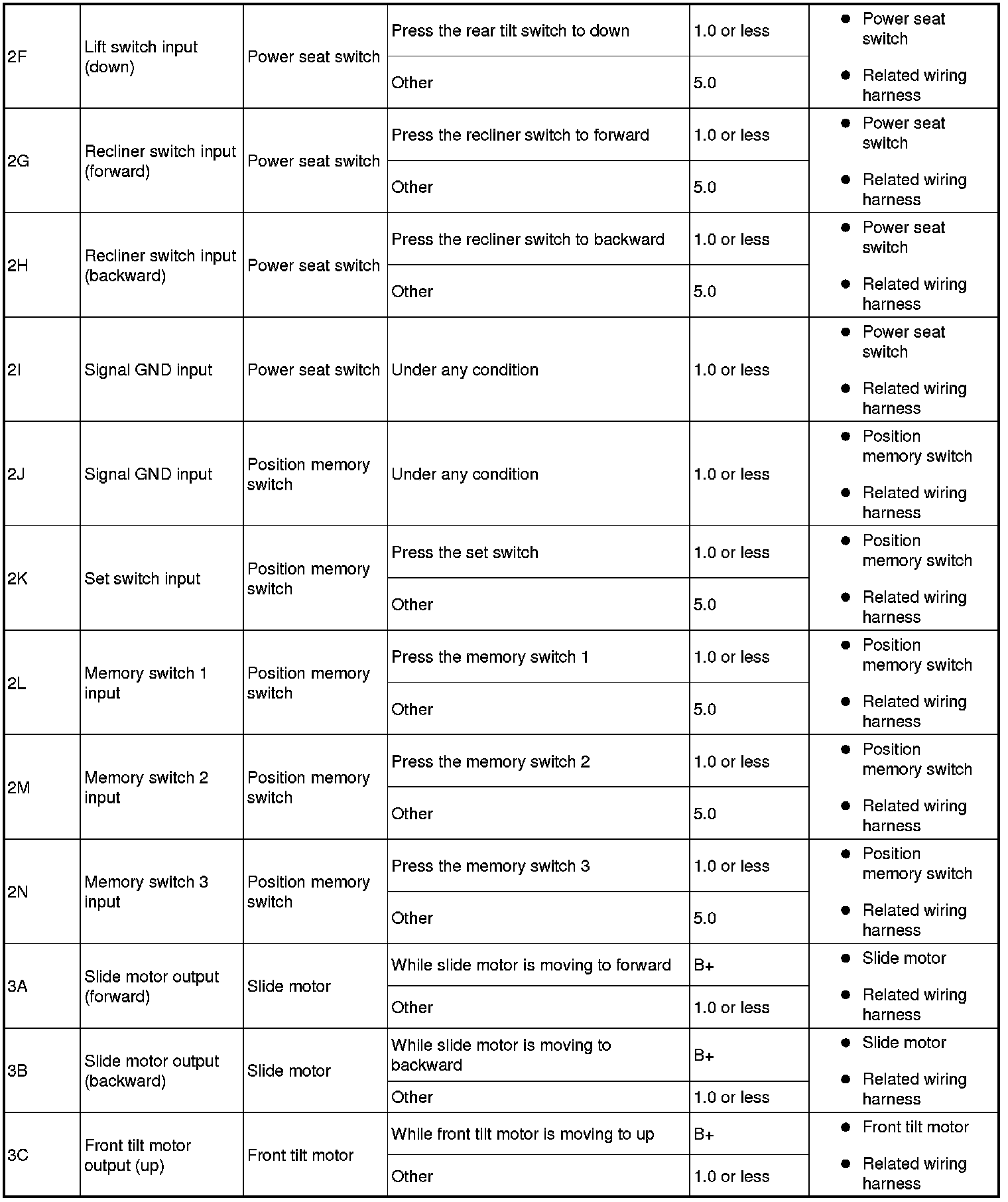 2. If the system does not work properly even though the inspection items or related wiring harnesses do not have any malfunction, replace the position memory control module.