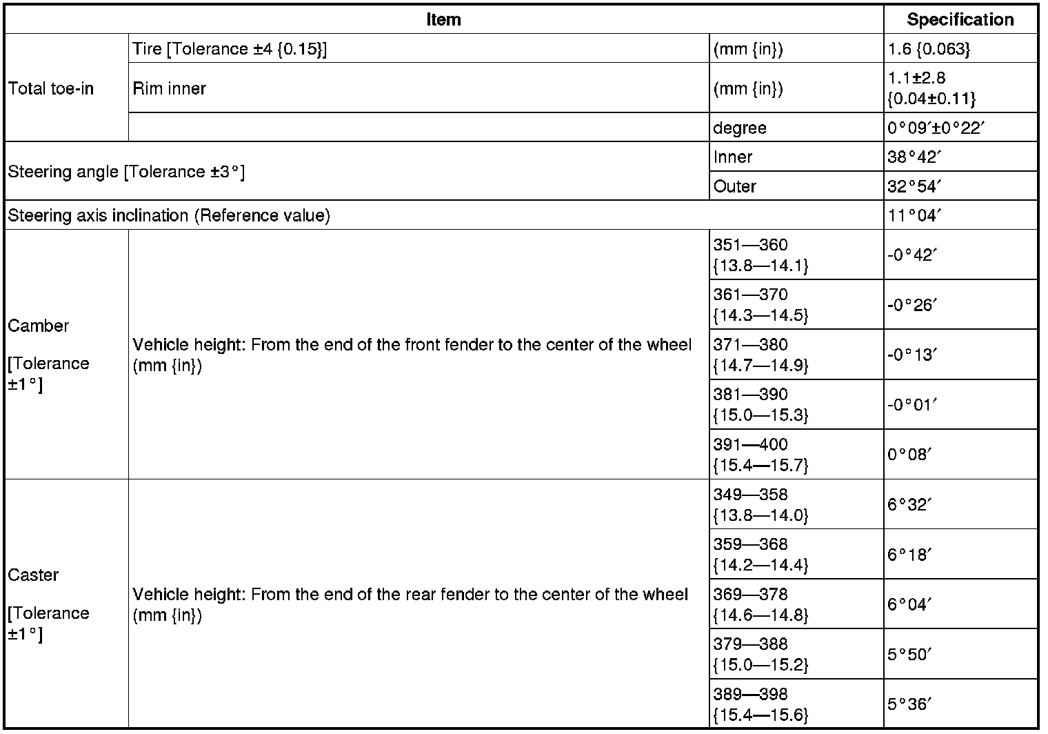 Front wheel alignment [16-inch wheel]
