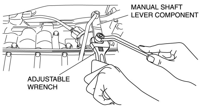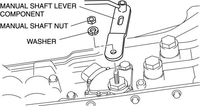 - Do not use an impact wrench. Hold the manual shaft lever when removing the manual shaft nut, otherwise the transmission may be damaged.