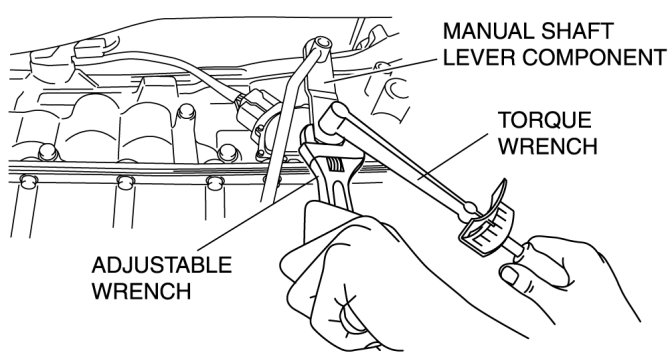 - Do not use an impact wrench. Hold the manual shaft lever when tightening the manual shaft nut, otherwise the transmission may be damaged.