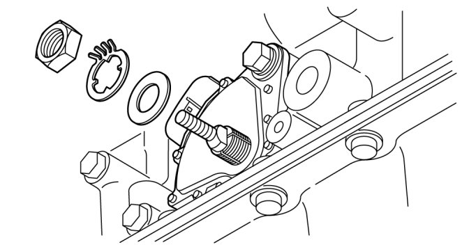14. Remove the nut, lock washer and the washer.