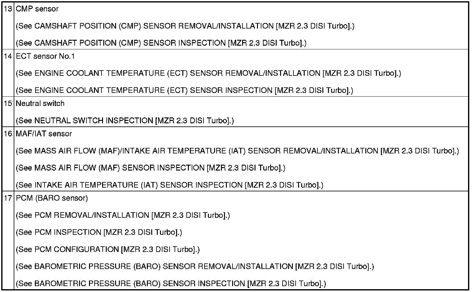 CONTROL SYSTEM LOCATION INDEX [MZR 2.3 DISI Turbo]