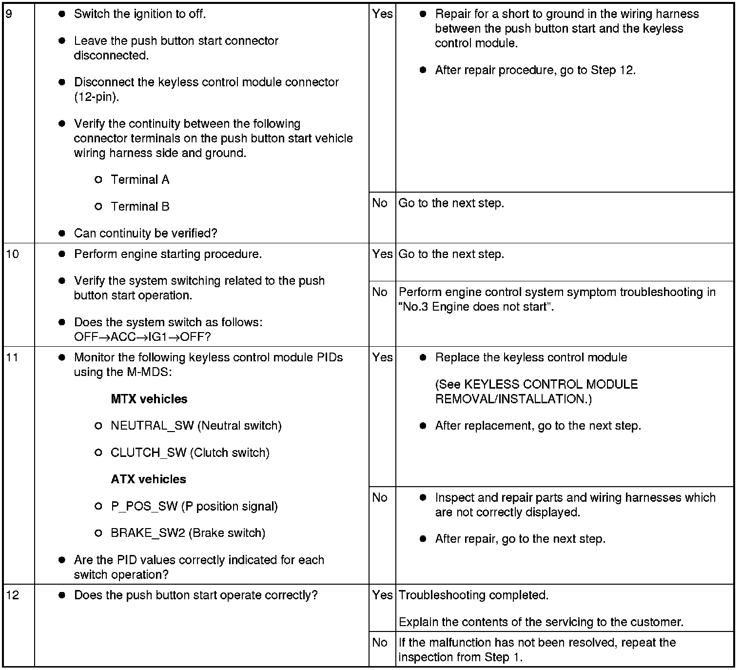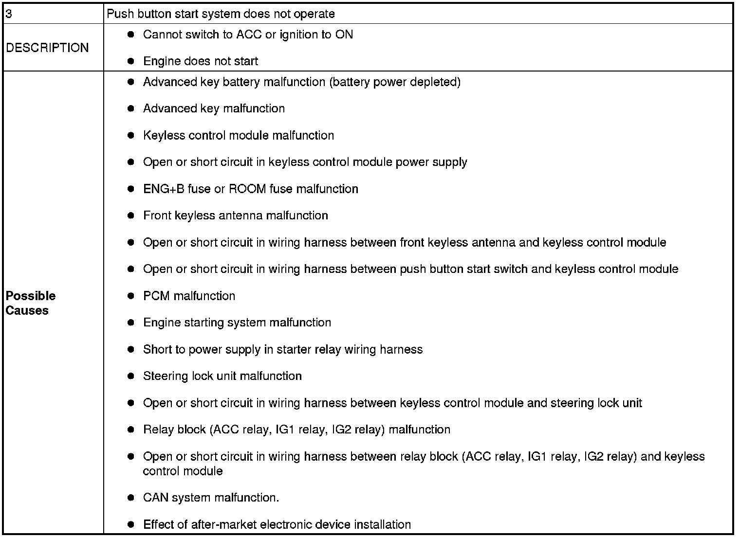 No. 3 Push Button Start System Does Not Operate