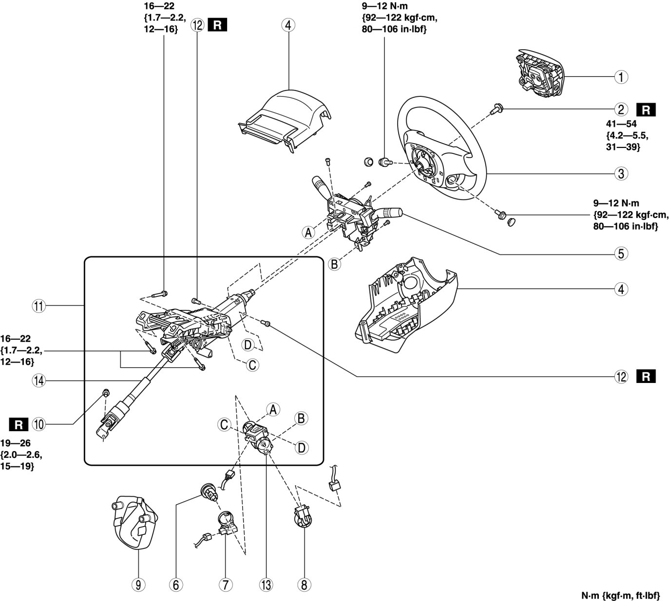 STEERING WHEEL AND COLUMN REMOVAL/INSTALLATION [WITHOUT ADVANCED KEYLESS ENTRY AND PUSH BUTTON START SYSTEM]