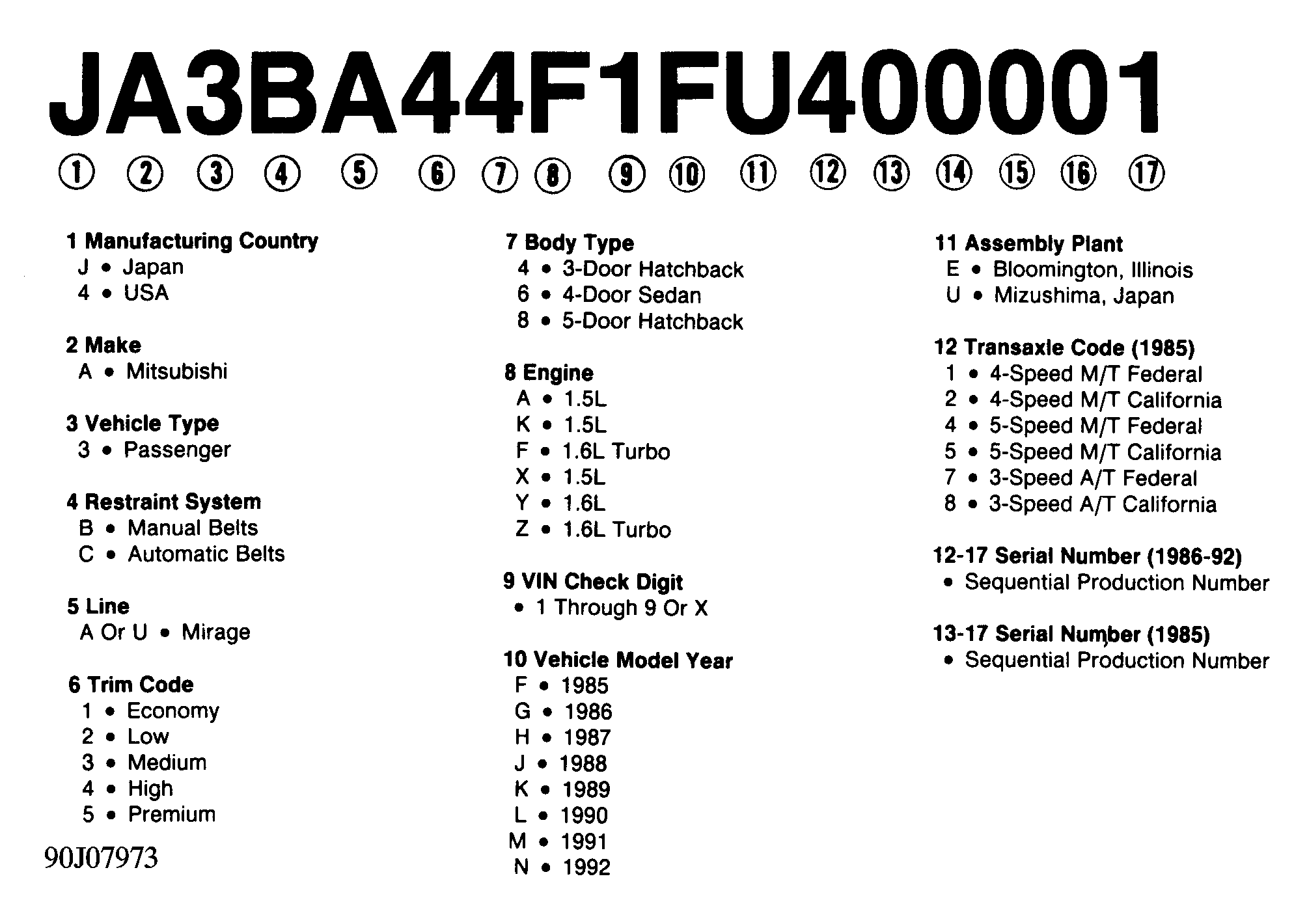 Home >> Mitsubishi >> 1985 >> Mirage Base >> Repair and Diagnosis >> Engine Performance >> Application >> Engine/VIN Id >> Model Identification >> VIN Code Id Explanation