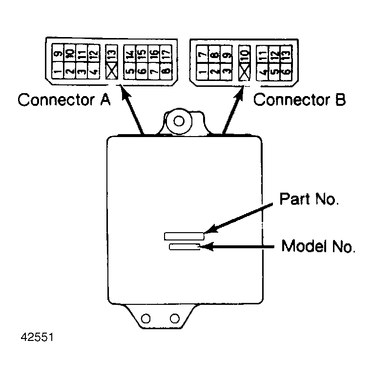 With voltmeter, use following charts to identify the pin connectors. See Fig 1 Check voltage of each terminal as specified in charts. Make sure ignition switch, vehicle operation and conditions are observed as called out in procedure.