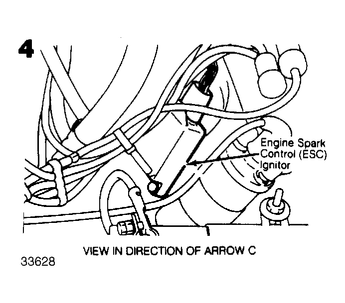 | Engine Spark Control (ESC) Ignitor | On left inner fender panel. See Figure. |