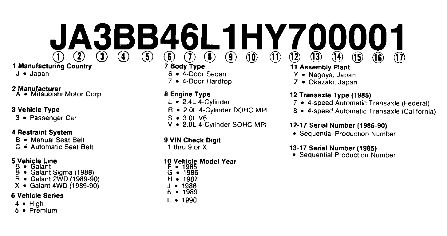 Home >> Mitsubishi >> 1987 >> Galant Standard >> Repair and Diagnosis >> Engine Performance >> Application >> Engine/VIN Id >> Model Identification >> Notes