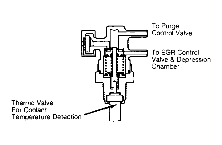 The thermo valve in the EGR vacuum supply line is a switch that is sensitive to engine temperature. The thermo valve eliminates vacuum signal to the EGR valve during engine warm-up when less NOx is emitted. Less EGR helps maintain acceptable driveability. See Fig 1 .