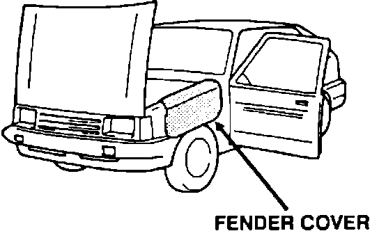 1. Open the hood and install fender covers on both fenders.