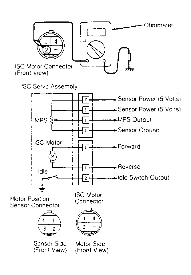 Home >> Mitsubishi >> 1988 >> Mirage Base, Standard >> Repair and Diagnosis >> Engine Performance >> System >> Fuel Injection System - ECI System >> Testing >> ISC Servo Motor