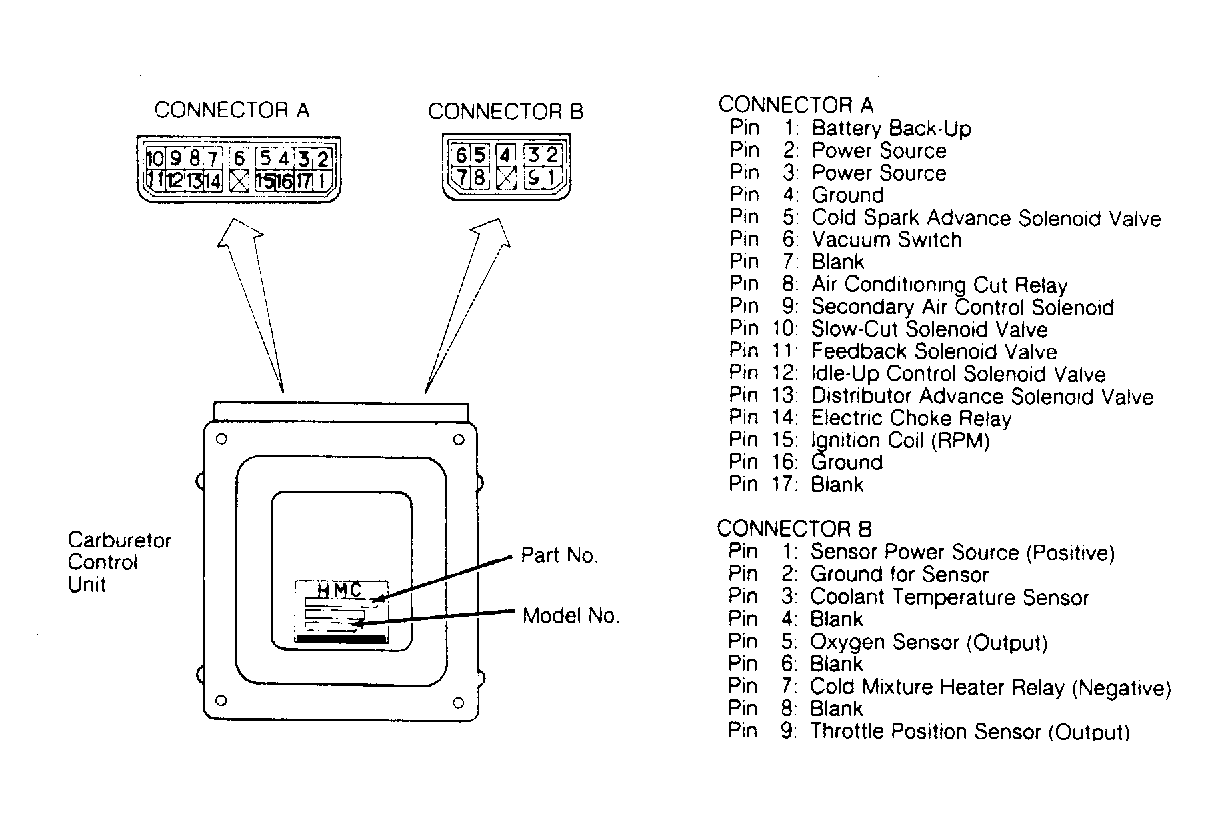 1. Turn ignition switch to "OFF" position. Remove harness connectors "A" and "B" from ECU. See Fig 1 .