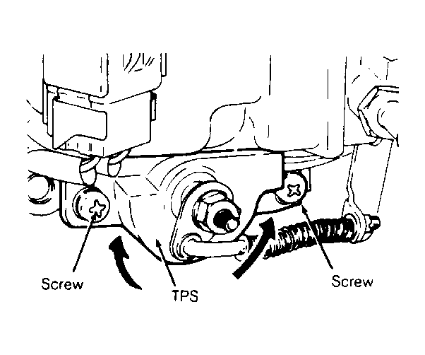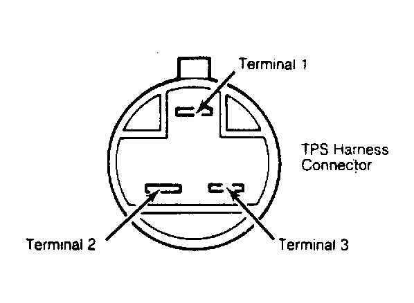 Disconnect TPS connector. Connect a digital voltmeter between terminals No. 2 and 3. See Fig 1 . Ensure voltage output matches specifications in FBC System Check Procedures Chart. See Figure . If voltage readings are improper adjust TPS by loosening 2 TABLE screws and rotating TPS. See Fig 2 . If adjusting will not provide proper voltage, replace TPS.