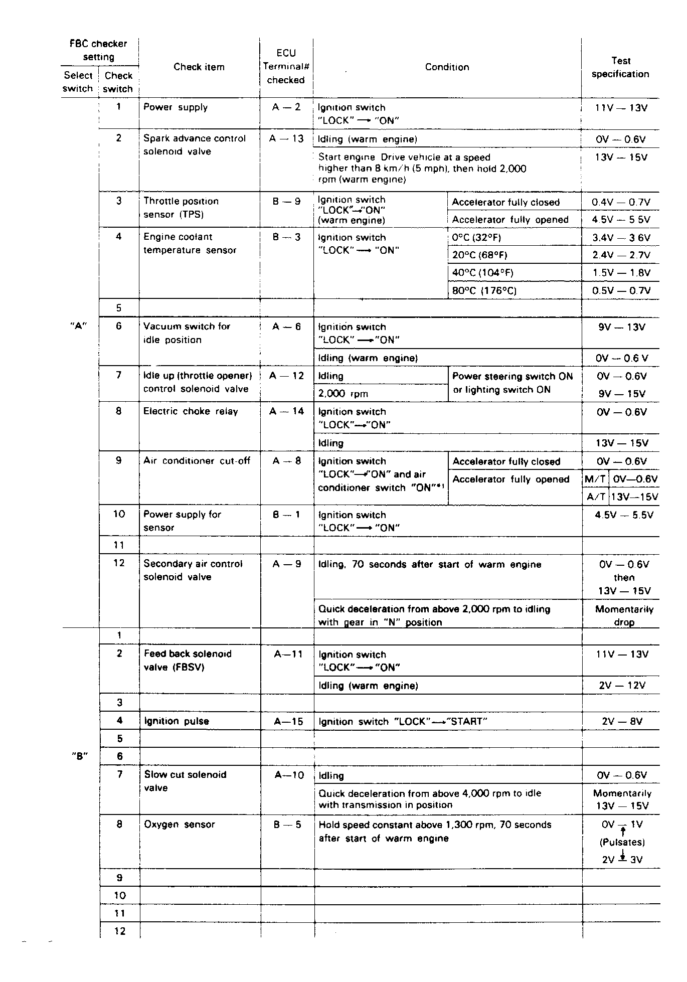 Home >> Mitsubishi >> 1988 >> Precis Base >> Repair and Diagnosis (Single Page) >> Engine Performance >> System >> Feedback Carburetor System >> Testing >> Throttle Position Sensor (TPS)