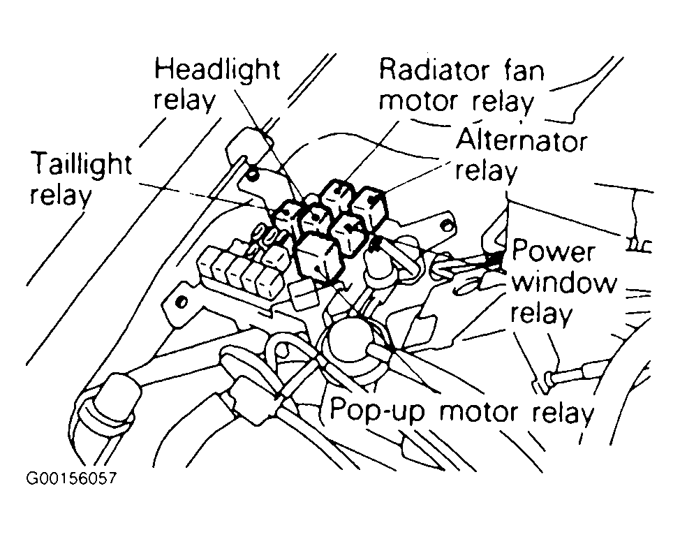- Remove headlight relay or taillight relay from the engine compartment relay box. See Figure
