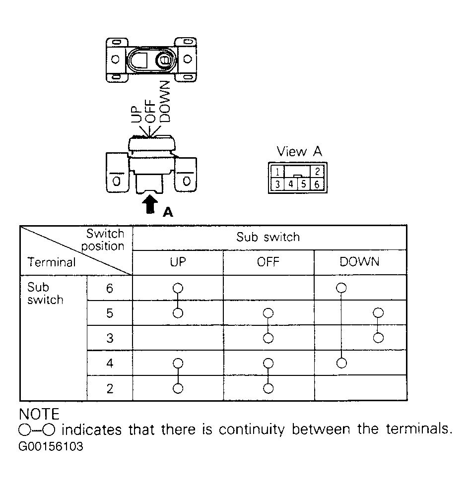 Check power window sub switch for continuity. See Fig 1 . If continuity is not as specified, replace switch.