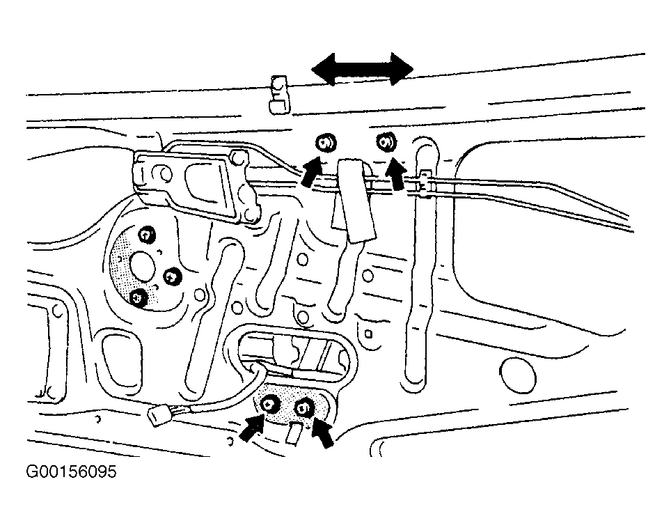 - Loosen the installation bolt of the window regulator assembly. See Fig 1 .
