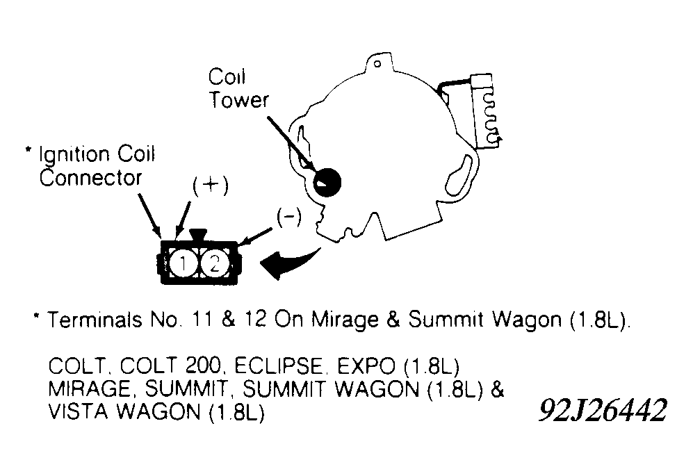 Home >> Mitsubishi >> 1992 >> Eclipse Base, Standard >> Repair and Diagnosis >> Engine Performance >> System >> Engine Controls - Basic Testing >> Ignition Checks >> Optical Ignition - 1.8L >> Ignition Coil Resistance