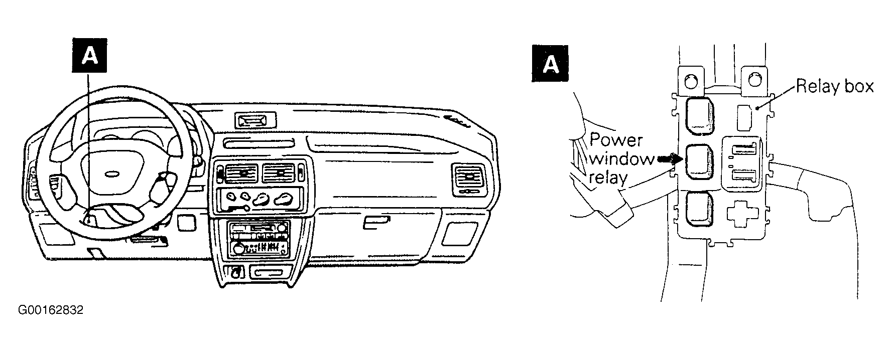 | Power Window Relay | In relay box behind left side of dash. See Fig 2 . |