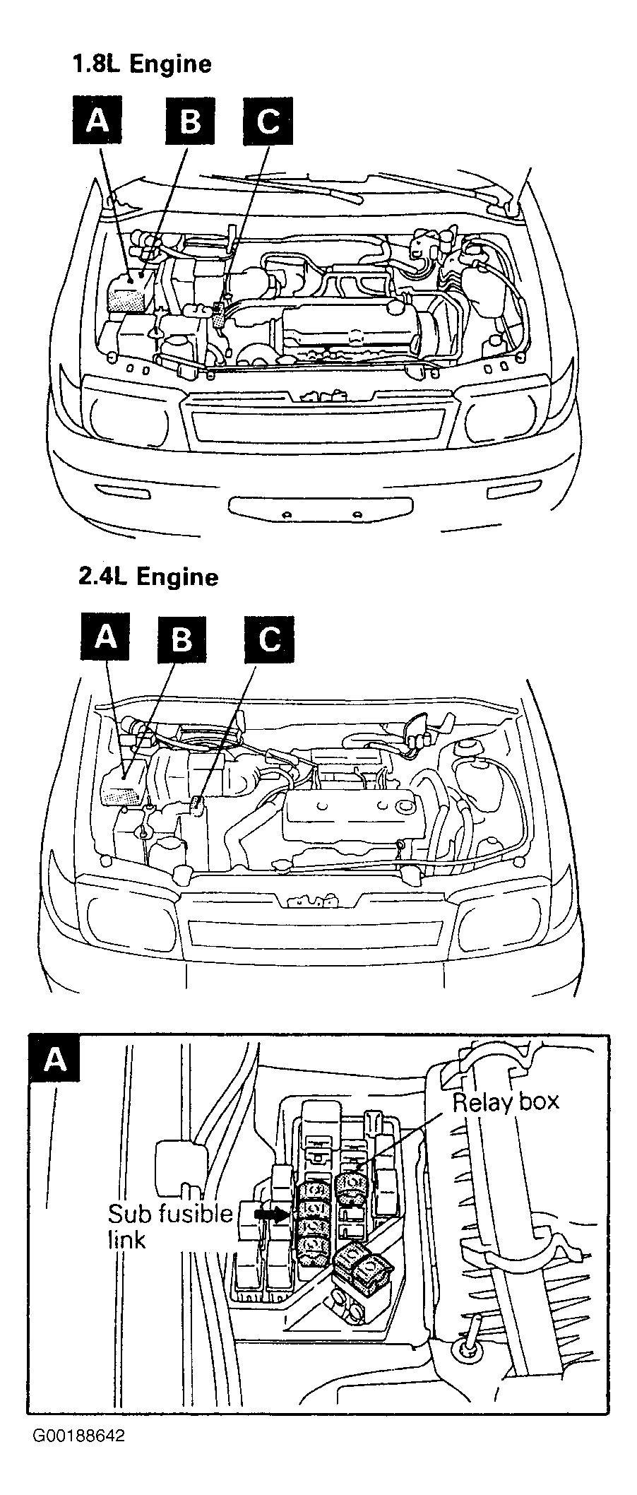 | Engine Compartment Relay Box | In right side of engine compartment. See Fig 3 . |